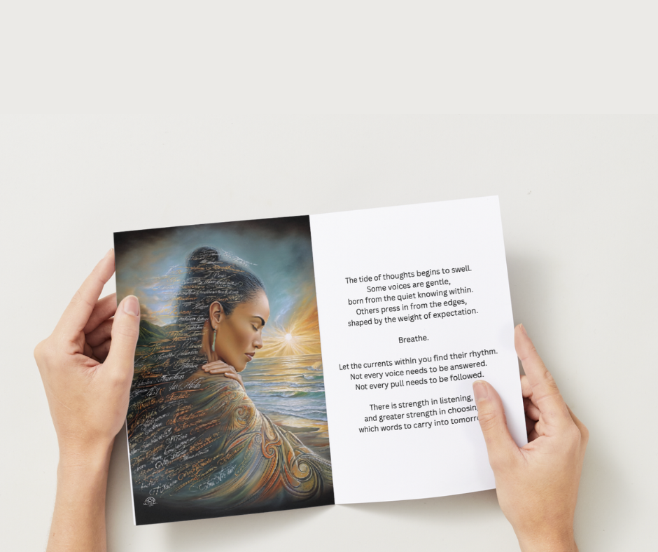 Born from the Whispers of Aroha Facebook community, these writings offer gentle reminders to pause, breathe, and return to your centre. Threads of te ao Māori flow throughout — the grounding of Papatūānuku, the breath of Hine ahuone, and the light of Hine-tītama — guiding moments of comfort, courage, and self-care.
